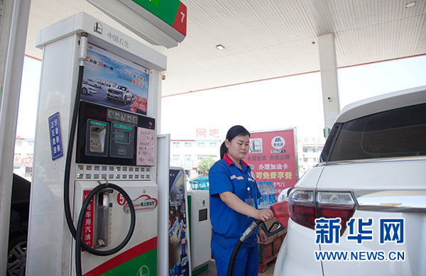 5月25日,河北省武邑县一家加油站的工作人员在为汽车加油。当日,国家发改委发布消息,根据近期国际市场油价变化情况,按照现行成品油价格形成机制,自5月25日24时起,国内汽油、柴油价格每吨分别上调140元和135元,折合每升上调约1角。新华社记者 朱旭东 摄