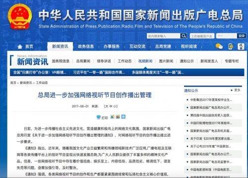 日前,为进一步传播社会主义先进文化,营造健康积极向上的网络文化氛围,国家新闻出版广电总局印发《关于进一步加强网络视听节目创作播出管理的通知》,对网络视听节目的创作播出提出进一步要求。