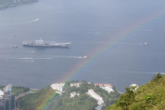 【8时许】辽宁舰经过东博寮海峡抵达香港,开始正式访问。