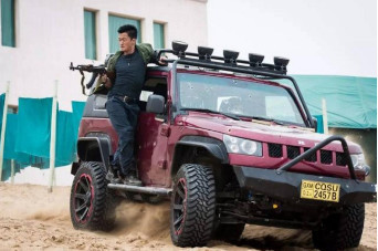 在拯救的那段戏中,吴京开的那辆越野车也是国产车。吴京为了能让这辆车从国内运到非洲拍摄地,花费了很大的人力物力。为了能办理出关手续,走程序就花了4个月时间,随后在从港口运输到非洲,在从港口运到拍摄地,在一辆车上就花费了半年时间。