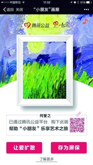 腾讯公益慈善基金会执行秘书长窦瑞刚告诉北京晨报记者,到2016年,腾讯公益推广了两万多个公益项目,获得超过8亿的善款,是2014年的8倍之多,这一切都要归功于互联网的技术和用户平台能力。这次一开始锁定的是小朋友,但后来接触了这个特殊群体后发现,他们当中更多的人已经是成年人了。从他们的画里也可以看到,成年的他们却有着孩子一样的天真想象和对美的敏锐捕捉。所以,就有了“我的心里住了一个小朋友”这样的创意想法。为了让更多人关注和参加,在H5设计上以呈现画作为主,尽可能凸显画作本身的美。在参与方面,试着把门槛做到了最低:1元钱就可以购买电子画作,让更多人加入到支持这些“小朋友”的队伍中。