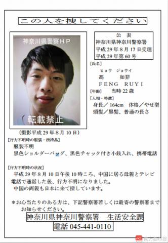 据介绍,不幸身亡的23岁中国留日学生冯如羿来自湖北黄冈市,失联前居住在日本横滨市,他的遗体于8月29日在静冈县境内富士宫北山山脚下被发现。静冈县警方发现冯如羿的遗体时,"护照、银行卡都不见了,随身物品只有一部手机,还是被水浸泡过的,很难打开"。
