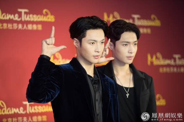 凤凰网娱乐讯 9月8日,北京杜莎夫人蜡像馆进行了张艺兴蜡像的揭幕仪式。张蜡像身着剪裁精致的藏蓝色丝绒西服,搭配黑色缎面衬衫,以标志性的“L”手势亮相众人面前,举手投足间尽显绅士风度,与荧幕前的阳光形象不同,这具蜡像看起来更高冷。