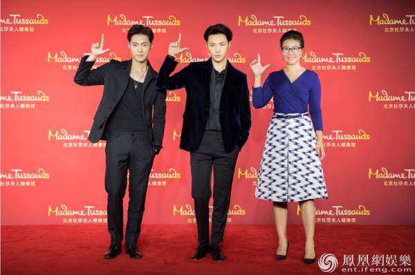 张艺兴和蜡像合影