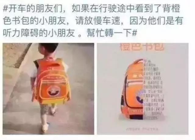 最近,一条“开车看到背这种橙色书包的孩子,请务必放慢车速.......”的微博在朋友圈传播,许多网友为这种正能量点赞,纷纷转发扩散。不过,也有人质疑:“这图这么糊,别是朋友圈随便转发的谣言吧?”据了解,“橙色书包”是真的!