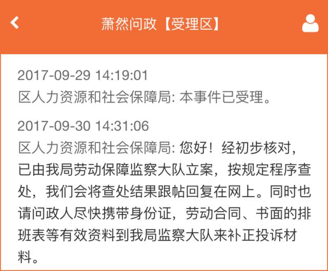 网友也把此事反映到了萧山网络问政平台,已被萧山人力资源和社会保障局受理。