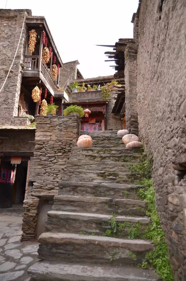 这里的寨房相连相通,外墙用卵石、片石相混建构,斑驳有致,寨中巷道纵横,保留了远古羌人居“穹庐”的习惯。