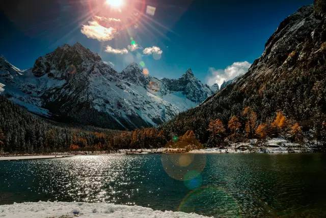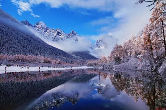 △蓝天白云彩林碧水雪山