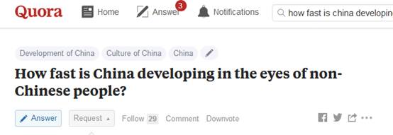 过去的五年,是中国高铁“飞奔”的五年;过去的五年,是中国互联网经济和移动支付“快速普及”的五年;过去的五年,也是中国贫困人口大幅度减少的五年。不少西方国家的政府人士以及专家学者持续聚焦和研究“中国速度”,向中国取经。“在外国人眼中,中国发展有多快?”日前,有人在美国版知乎Quora上抛出了这个问题,环球网记者发现在该问题所获得的回答中,有个关键词格外突出——难以置信(unbelievable)。