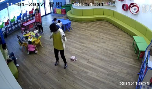 上海携程托管所老师虐童,推搡幼儿致其摔倒头部撞击在桌角。