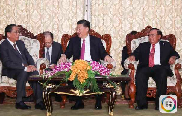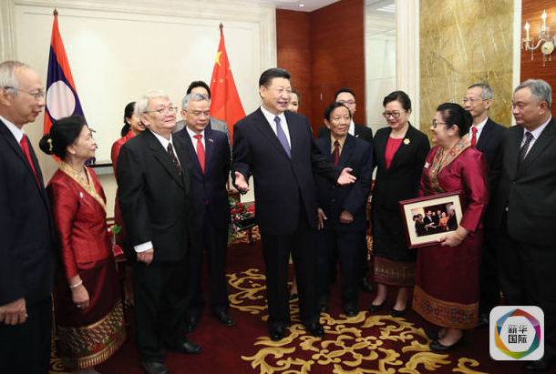 在万象,习近平同奔舍那等家族友人亲切见面、再叙友情,勉励他们继续投身中老友好事业。