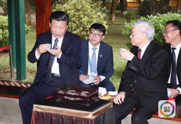 在胡志明故居,习近平总书记、国家主席同阮富仲总书记品茗畅谈,承诺不忘中越传统友谊的“初心”。