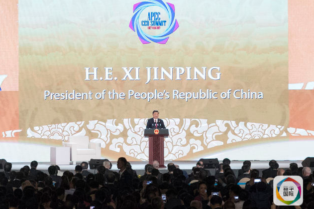 在APEC工商领导人峰会上发表主旨演讲时,习近平精辟阐述中国发展的前进征程、深刻揭示中国发展的光明前景、鲜明指出中国发展的和平本质、充分展现中国发展的世界意义,阐释中国发展道路。