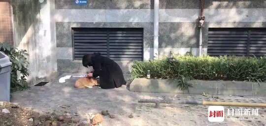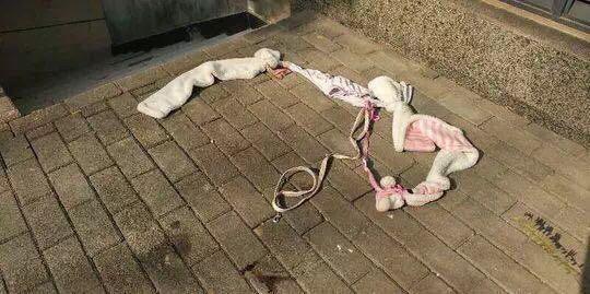 大概几分钟后,谁都没想到的情况突然出现了:在何某所住楼栋下方地面上,吴女士发现了一条嘴角流血的狗,还在抽搐,奄奄一息。她上前一看,顿时就嚎啕大哭,躺在地上的狗,居然正是她苦苦寻找的莱恩。