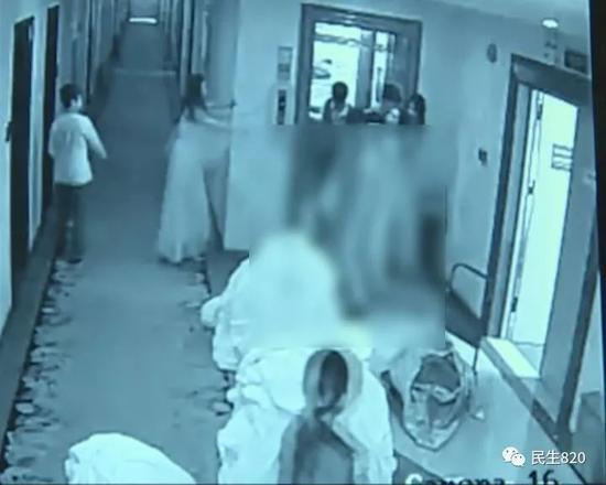 此后,小钟被几人合力抱出电梯,但刚一迈出电梯门,小钟又摔了个大跟头,摔倒的同时,另一个女孩随她一块摔倒在地。最终,同行的两名男孩费了好大劲儿才把小钟带向酒店客房。