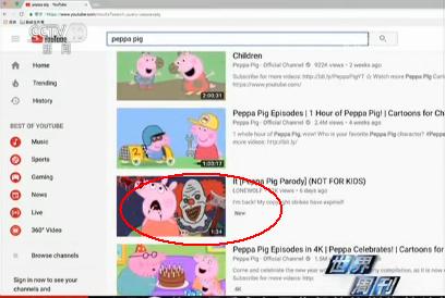 小猪佩奇,当前最受欢迎的幼儿动画片,画风温馨可爱。但是,在YouTube视频网站上输入关键词“小猪佩奇”进行搜索,你却可能搜到这种版本的《小猪佩奇》。
