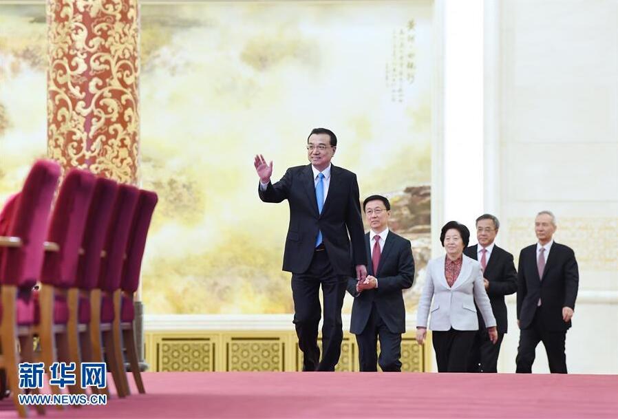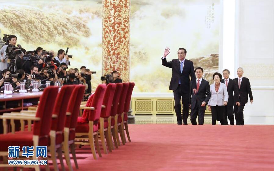 3月20日,国务院总理李克强和副总理韩正、孙春兰、胡春华、刘鹤在北京人民大会堂与中外记者见面,并回答记者提问。 新华社记者 王晔摄