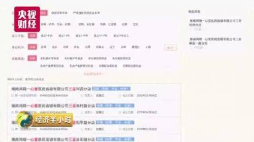 《经济半小时》记者了解到,三亚市共有23家一心堂连锁药店,23家分店除一家店以外,其余22家分店负责人都是一个名叫张爱红的人。这23家一心堂连锁药店都隶属于海南鸿翔一心堂医药连锁有限公司,而这家公司的股东则是云南鸿翔一心堂药业(集团)股份有限公司。