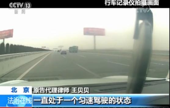 原告代理律师 王贝贝:在行车记录仪长达八分钟的行驶过程中,一直处于一个匀速驾驶的状态,而车距离边线是纹丝不动,没有丝毫的偏移。那么我们向很多专家,很多特斯拉的车友展示了这一视频,提供了咨询,大家给出的一致意见认定车辆的行驶状态一定是“自动驾驶”状态。如果不是“自动驾驶”状态,手握方向盘的话,不可能在长达八分钟的时间里纹丝不动。