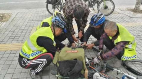 “还好大家随身携带了修车工具。”这次骑行中,骑友陈金明此前是开大车的,有修车经验,荒郊遇到爆胎,大家将车停在路边,现场动手修好车后继续出发。