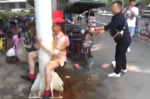 央视网消息:近日,一条闹婚视频在网络上传播。视频中,河南郑州一名新郎被朋友缠满胶带绑在路边灯杆上,头上还被戴上了红色塑料袋,随后不断有人拿芥末、醋、酱油、可乐往新郎身上泼,一旁有人边笑边拿着手机录像。一阵嬉笑过后只留下满地的狼藉和环卫工大妈的气愤:“这是闹啥呢!”
