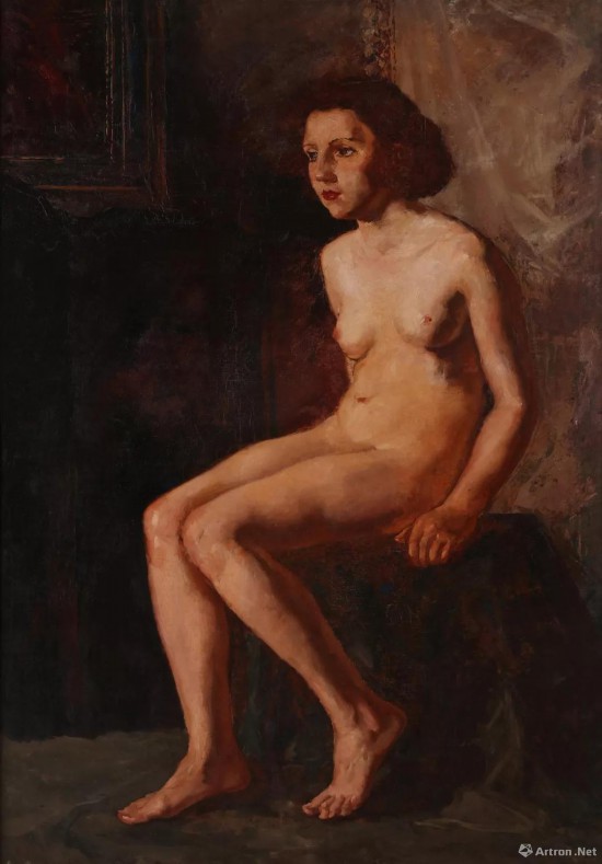 2018西泠春拍 吴作人 坐女人体 布面 油画 创作于20世纪30年代 130×90cm