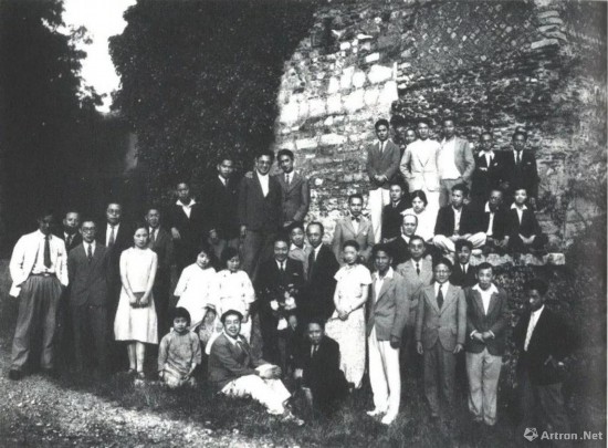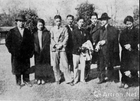 1929年部分南国社成员在南京中央大学校园中合影(右二为徐悲鸿,左四为吴作人)
