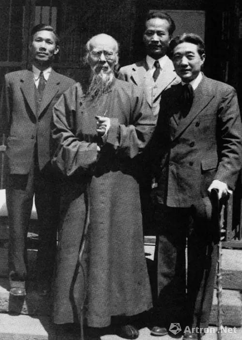 吴作人(右二)与齐白石(左二)、徐悲鸿(右一)的合影
