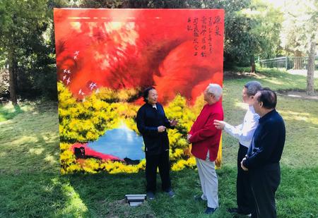 据主办方介绍,景山公园这次一改以往室内展陈书画的常规方式,在公园内山体周围设置多处太阳能供电展示系统栏,并首次推出互维感导巨幅创意中国画,展出来自全国各地书画名家专题创作的精品力作。