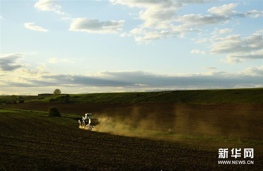 4月27日,一辆拖拉机在西班牙莱昂省的农田耕地。莱昂省地处西班牙西北部,拥有壮丽的自然风光和丰富的人文资源。 新华社记者郭求达摄