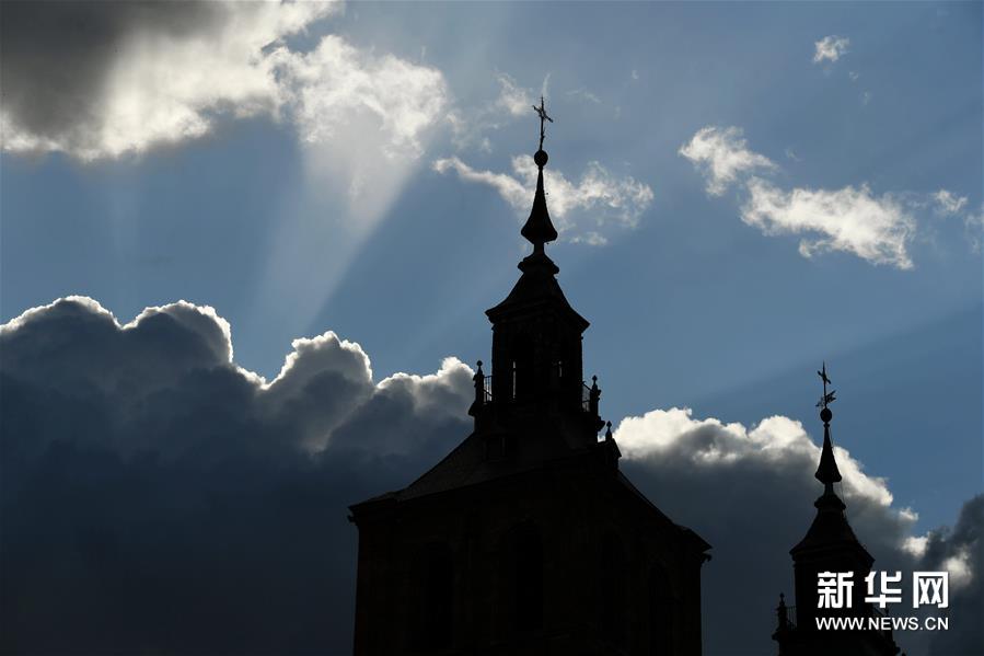 这是4月28日在西班牙莱昂省阿斯托加拍摄的教堂。莱昂省地处西班牙西北部,拥有壮丽的自然风光和丰富的人文资源。 新华社记者郭求达摄