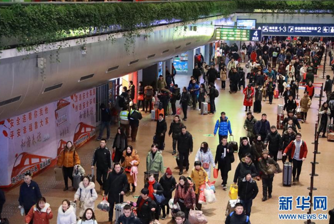 2月1日,旅客在北京西站进站乘车。 新华社记者 邢广利 摄