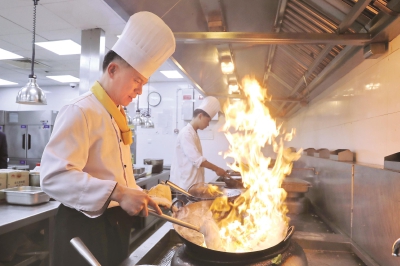 农历除夕,是千家万户一年中最期盼的欢聚时光,也是新锦江大酒店行政总厨黄国平最忙碌的时候。在烟火气氤氲的大厨房,他是这里的总指挥。“热菜要开始上桌了,抬出去的时候要注意‘卖相’。”他总会不断提醒新来的“95后”小师傅注意种种细节。
