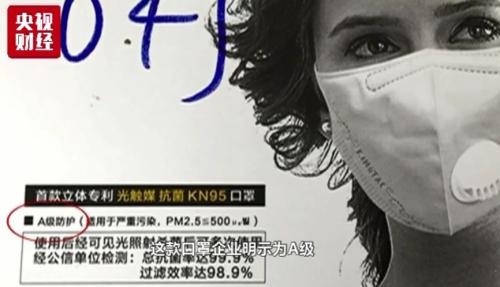 江苏省特种安全防护产品质检中心项目主管姚永伟:这款口罩的企业明示为A级,但是经过检测,它的防护效果是D级。消费者以为这款口罩可以在严重污染程度下使用,但是经检测,其实这款口罩就只能在中度污染环境以下使用。