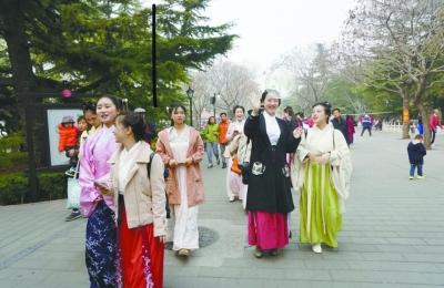 “经常能在街上看到穿汉服的姑娘,尤其现在春暖花开,在公园里拍照的真多。”今年春天,很多市民感受到了汉服潮的升温,“仙气儿”打扮的汉服出游者,俨然成为故宫、北海、玉渊潭等重点景区的“流动风景”。随着人们对传统文化日趋重视,以及对年轻人着装风格多样化的包容,身穿汉服上街不再显得突兀,这也带火了包括线上店铺和线下体验店在内的“汉服经济”。