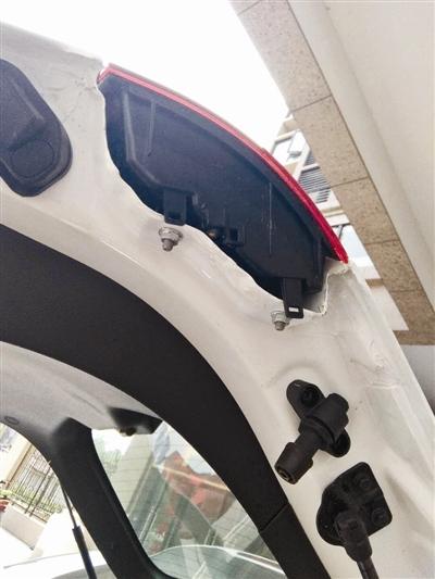 孙先生查看车辆,发现该车出厂日期是2017年11月,再仔细看,车身保险杠多处鼓包脱漆,后雨刮器也没有,打开后备箱时,后尾灯保护壳也随之脱落,挡位胶圈也老化。“我买车时说清楚了,要2019年的新车,他们却给我2017年的库存车,而且还老化,部件脱落。”孙先生提出质疑,对此,工作人员解释称,该款车早就停产了,目前销售的只有2017年生产的车辆。