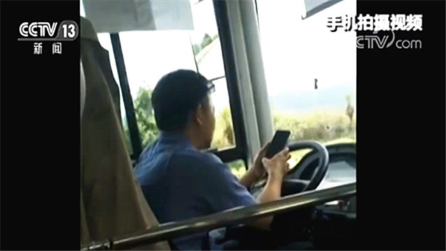 央视网消息:5月15号,在广东佛山高明505路公交车上,一名公交车司机一边开车一边玩手机,乘客拍下视频并举报给公交公司,司机受到了相应处罚。