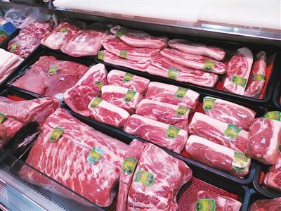超市冰柜里出售的猪肉。本报记者 孔德晨摄