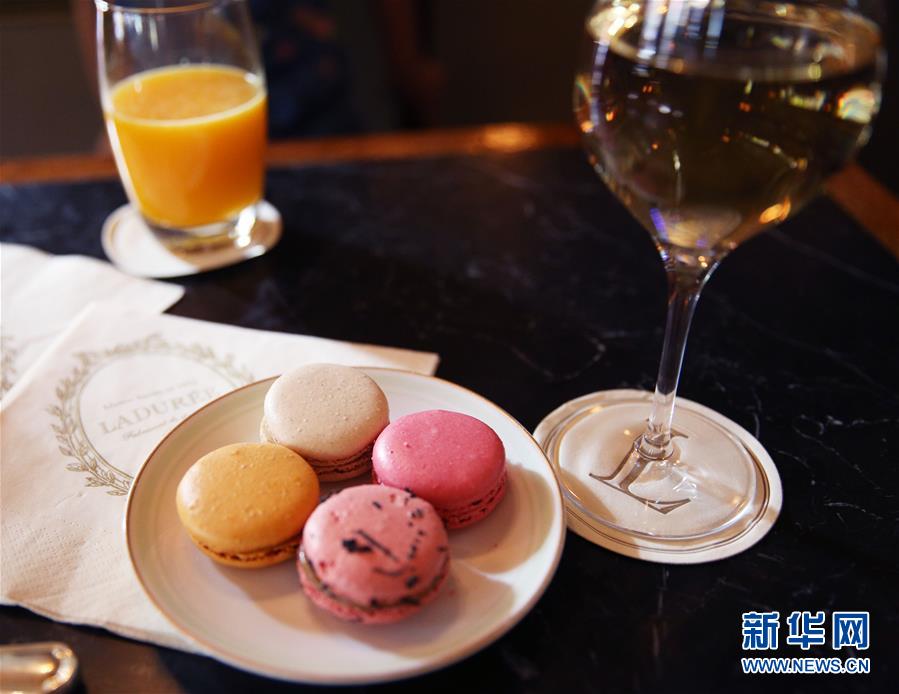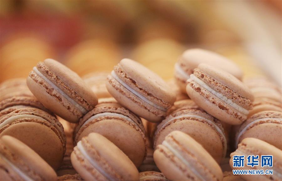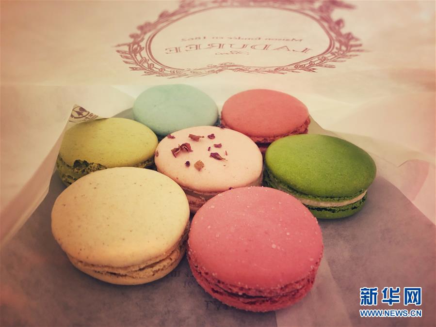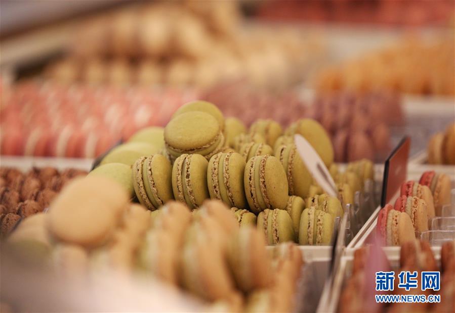 这是9月3日在法国巴黎知名马卡龙甜品店拉迪雷内拍摄的马卡龙。 马卡龙(Macaron)是源自法国的浪漫甜点,又称杏仁小圆饼、法式小圆饼,是一种用蛋白、杏仁粉、白砂糖和糖霜制作,并夹有水果酱或奶油的法式甜点,口感丰富,外脆内柔,外观五彩缤纷,精致小巧。马卡龙历史上曾是贵族食物,是奢华的象征。但随着历史的发展,马卡龙渐渐进入寻常百姓家,以其缤纷的色彩、清新细腻的口感和小巧玲珑的造型博得人们的喜爱。马卡龙层次感分明,咬一口,首先尝到的是很薄但酥脆的外壳,接着是又软又绵密的内层。和奶油的质感不同,杏仁饼的韧劲将馅料撑起,又给软腻的馅料增加了嚼劲。一枚完美的马卡龙,表面光滑,无坑疤,在灯光照射下泛着淡淡光泽,饼身下缘还会出现一圈漂亮的蕾丝裙边。如今,马卡龙作为法式甜点当之无愧的代表,受到世界各地人民的青睐,法国面包店、超市少不了马卡龙的身影,拉迪雷(Laduree)、皮埃尔·埃尔姆(Pierre Herme)等知名马卡龙甜品店常年门庭若市,吸引着慕名而来的人们把“法式浪漫”带回家。新华社记者 高静 摄