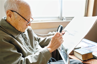 杨棣华老人至今保持着每天看英文报纸的习惯
