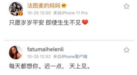 10月25日,李咏的妻子哈文发12字悼念丈夫:“只愿岁岁平安,即使生生不见”。随后,李咏女儿法图麦也发文:“每天都想你,迟一点,天上见。”