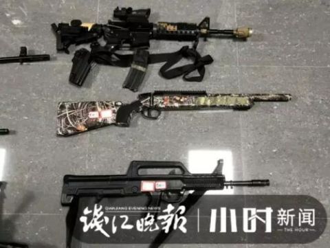 现场共查获各类疑似枪支44把(大部分是高仿枪支),枪支配件数千件,各类钢珠弹、bb弹数万发,并缴获匕首、弩等违禁品若干。经过后期对44把高仿枪支的初步鉴定,至少有5把符合枪支认定标准。