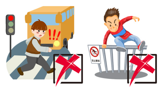 有的监护人甚至带着孩子闯红灯、翻越护栏