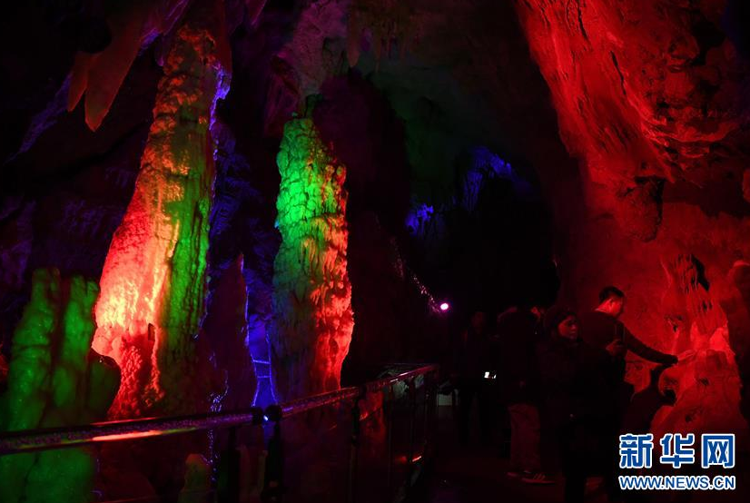12月5日,游人在天津市蓟州溶洞内欣赏钟乳石景观。 蓟州溶洞坐落在天津市蓟州区罗庄子镇,是天津市唯一的洞穴景观。目前虽已进入冬季,但洞内冬暖夏凉。溶洞内40处钟乳石景观晶莹剔透,千姿百态。 新华社记者 马平 摄