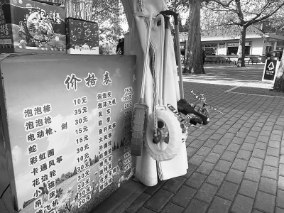 周末,朝阳公园内随处可见带着孩子前来游玩的家庭。“呀,玩具!”进入儿童游乐区没多久,徐女士的两个孩子就欢呼着冲向了路边的玩具摊位。只见玩具棚内,摆放着五彩风车、盒装拼图、泡泡棒、泡泡枪、塑料恐龙等各式各样的儿童玩具,俩孩子一时间挑花了眼。