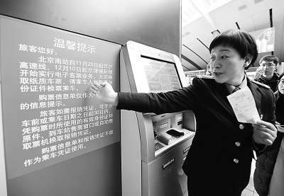 提醒:工作人员提醒旅客,改为电子客票后,已经没有以前的蓝色卡片式车票,而是改为了像商场收银小条一样的购票凭条。从电子客票试行以来,车站发现很多旅客不清楚电子客票情况,误认为凭条不是车票,反复打印。