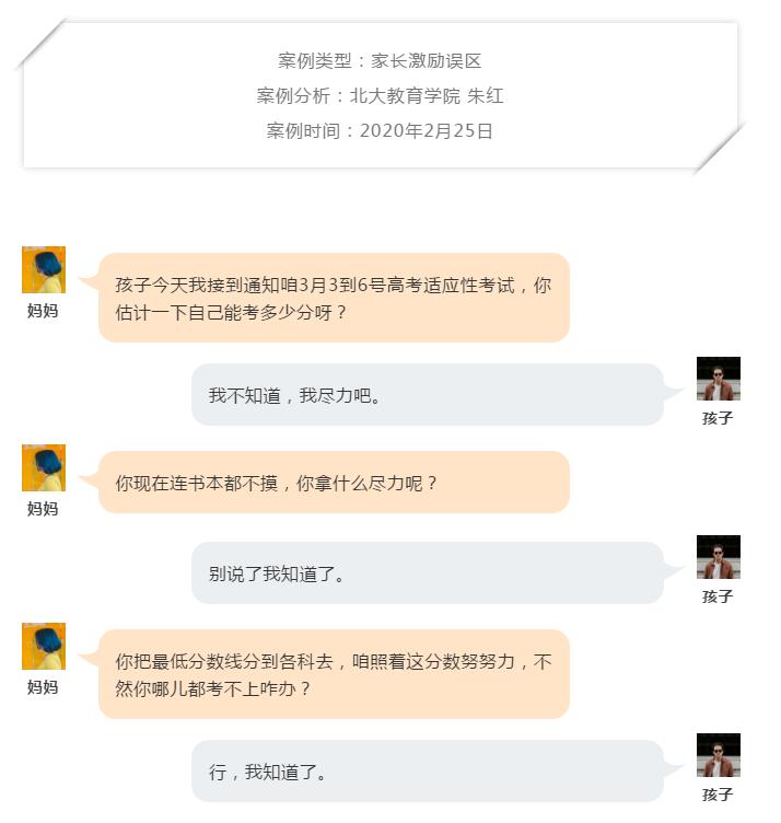 不是说孩子不能被批评,你鼓励他8句,完全可以再批评2句。可是如果一直用这种负面指责的方式和孩子沟通,就容易造成孩子畏惧退缩不愿意学习。从儿子后面敷衍的回答中,我们可以看出这样沟通的效果。