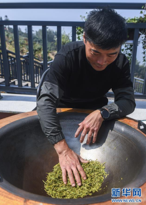 4月10日,里山镇安顶村的茶农在炒制云雾茶。新华社记者 徐昱 摄