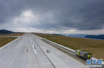 8月12日,校飞正式开始前一天,工作人员对仙女山机场跑道路面进行清洁(无人机照片)。 8月13日,位于重庆武隆区的仙女山机场飞行校验工作正式开始。据介绍,重庆仙女山机场校飞时间大约需3至5天。 重庆仙女山机场于2018年4月全面开工,机场跑道长2800米、宽45米,航站楼总面积6000平方米,投用后可满足每年60万人次的旅客吞吐量。 新华社记者 刘潺 摄