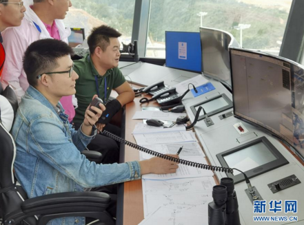 8月13日,参加校飞的地面工作人员在仙女山机场的塔台工作区内工作。 当日,位于重庆武隆区的仙女山机场飞行校验工作正式开始。据介绍,重庆仙女山机场校飞时间大约需3至5天。 重庆仙女山机场于2018年4月全面开工,机场跑道长2800米、宽45米,航站楼总面积6000平方米,投用后可满足每年60万人次的旅客吞吐量。 新华社记者 刘潺 摄